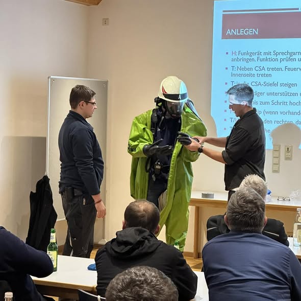 nahmen am Lewhrgang zur Weiterbildung zum CSA Träger teil. Nach einer Eingewöhnungs an den Anzug ging es weiter mit Einsartzübungen