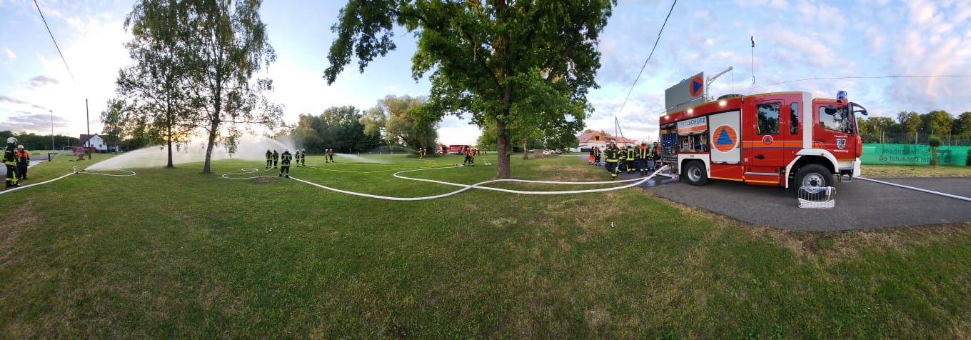 Anschließend übten alle gemeinsam in einer Zugübung zum Thema Flächenbrandbekämpfung.